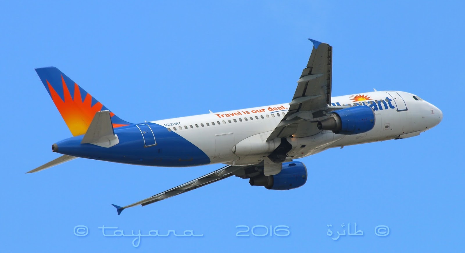 Ugly light, but happy to catch this one. Allegiant Air Airbus 320-200 N220NV was originally delivered to Iberia in July 2000 and operated for the Spanish carrier with two different registrations (EC-HKI and EC-HYC, the latter named 'Ciudad de Ceuta') before she went to America. Seen here departing for GSP (Greenville-Spartanburg) as Flight G41712. ✈